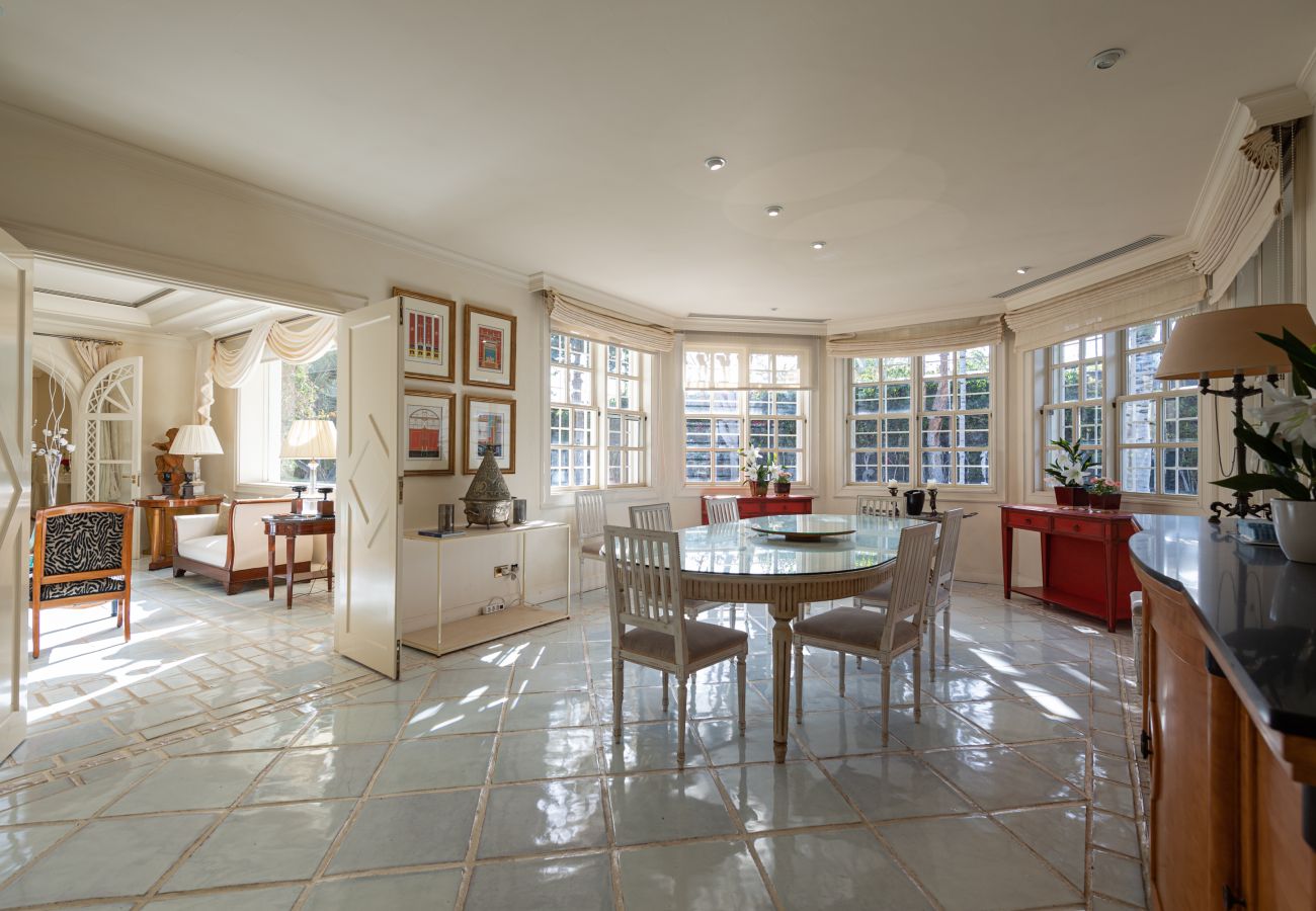 Alojamiento de 600 m² confortable y grande, situado en primera línea de campo de golf, con vistas al jardín y a la piscina.