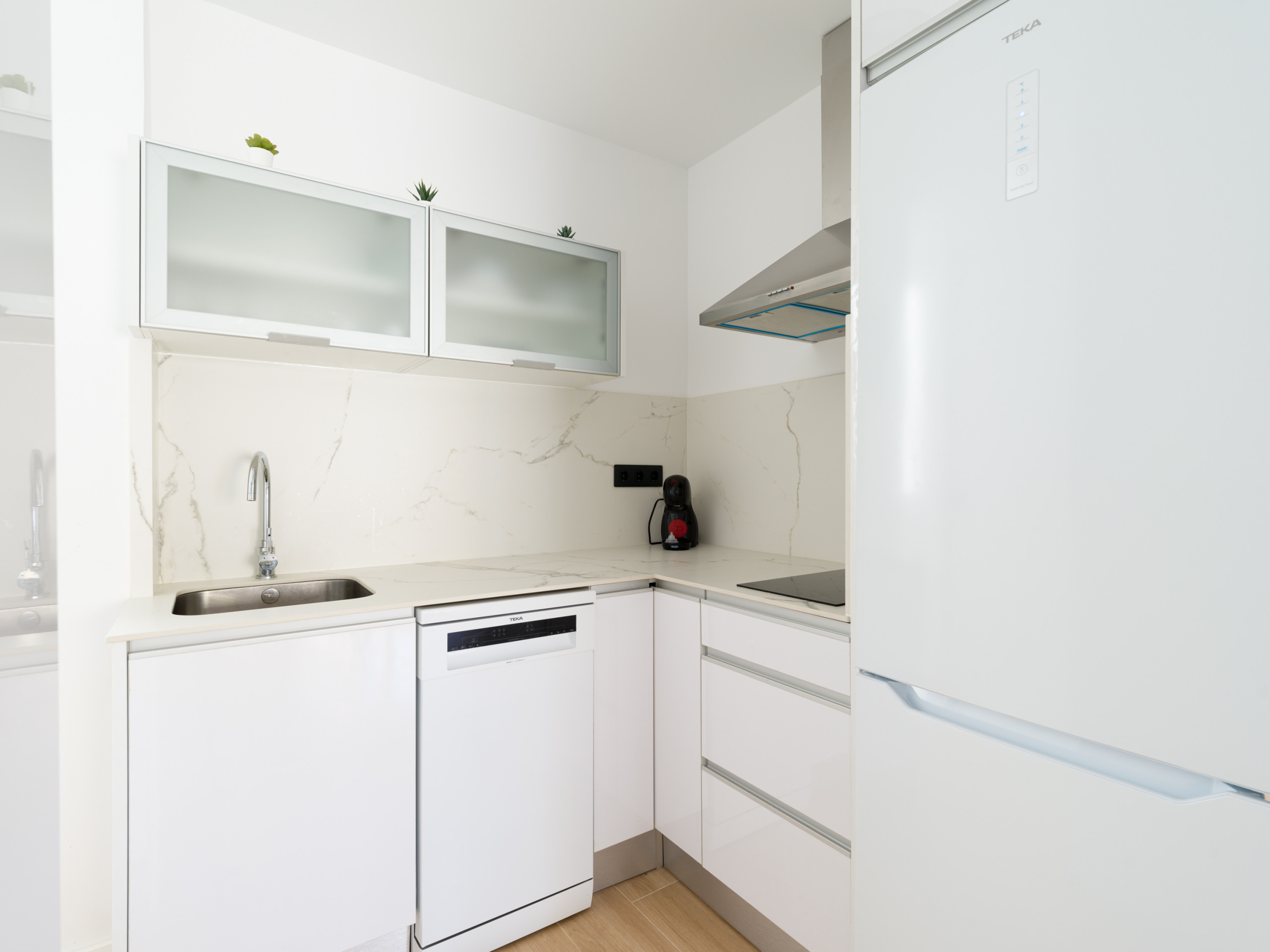 - Voll ausgestattete separate Küche mit modernen Geräten: Cerankochfeld, Mikrowelle, Backofen, Waschmaschine, Geschirrspüler und mehr